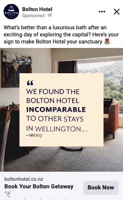 Furthermore, hotel bookings are both high-intent and high-value purchases. This meant that we had to find creative ways to engage their Facebook audience to take action and book with Bolton. Despite these obstacles, we helped Bolton Hotel to successfully navigate the social media landscape, and through creative and effective advertising, grow their customer base and boost bookings. How did we do it?